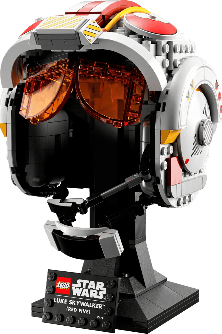 Este es el primer casco de un héroe de la saga en la línea LEGO, y pertenece a Luke Skywalker en su papel de piloto de los X-Wing. Conocido como Rojo Cinco en la Batalla de Yavin, Luke utilizó este casco mientras destruía la Estrella de la Muerte. A diferencia de los cascos anteriores en la serie LEGO Star Wars, este cuenta con una visera amarilla translúcida y detalles en rojo y blanco que imitan los rasguños y marcas del casco original. Es uno de los más innovadores de la serie, ya que incluye correas laterales y un micrófono para completar el look de piloto. Además, el uso de transparencias en la visera le da un realismo extra que lo diferencia de los otros cascos.Es un set único dentro de la colección, ideal para los fanáticos de la Alianza Rebelde.