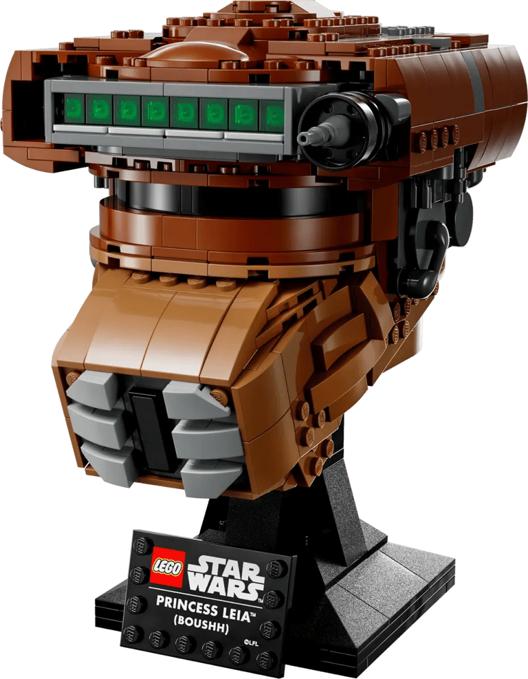 Pocas figuras en la historia del cine son tan reconocibles como Darth Vader e imponen tanto respeto como su casco. Con 834 piezas, LEGO ha recreado la esencia del Sith más temido de toda la galaxia. Su estructura es impresionante, desde la curvatura de la parte superior hasta las ranuras de la boca. Es un set con una construcción peculiar, pero el resultado final es una auténtica pieza de arte. Destaca especialmente por su acabado brillante y la forma en que se han utilizado piezas angulares para recrear la siniestra presencia del casco en el cine.